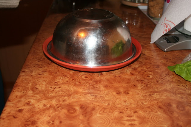 Końcowymi czynnościami przy wyborze opcji z dużą miską jest odwrócenie miski dnem do góry na talerz jak jak na załączonym zdjęciu. Jeśli masa odmawiałaby współpracy wystarczy na około 'przejechać' mokrym nożem i spróbować ponownie.